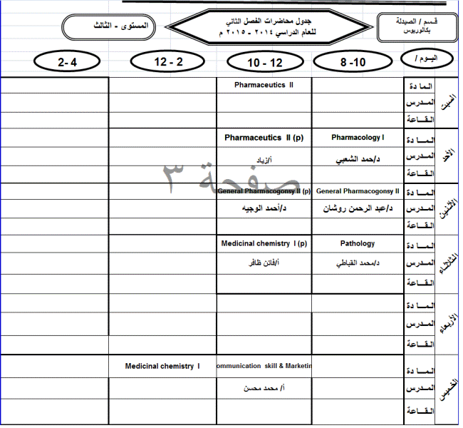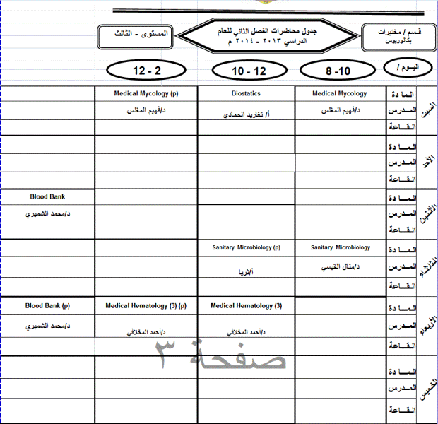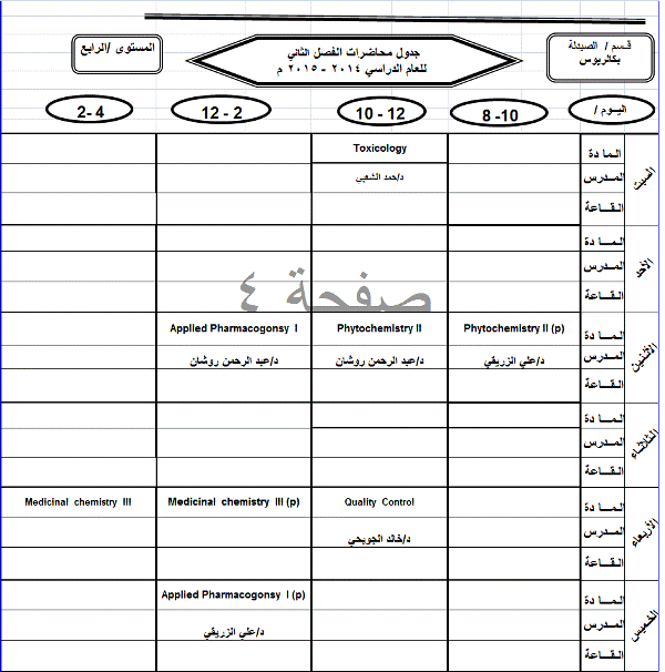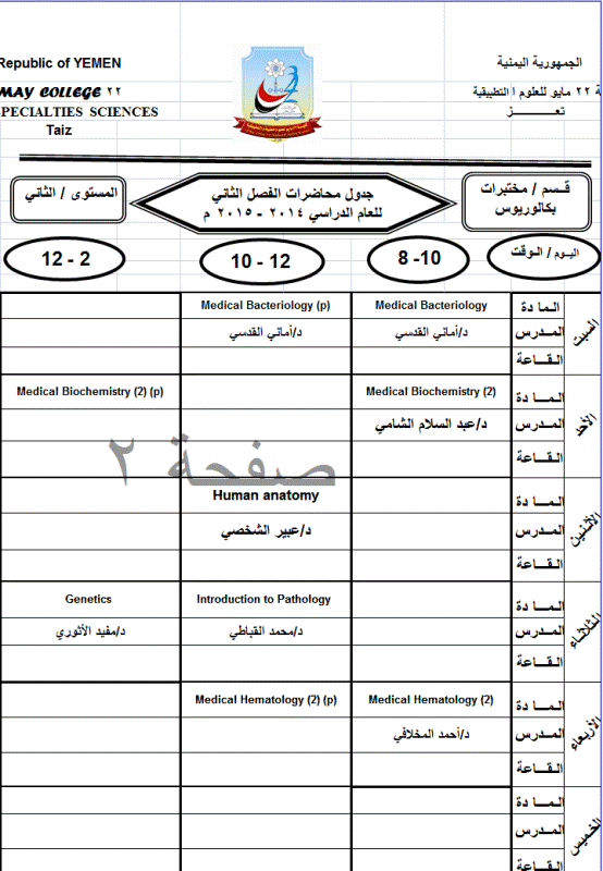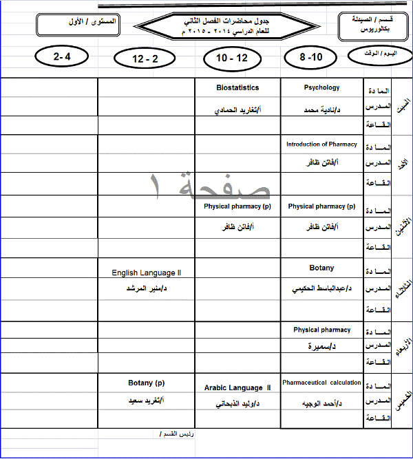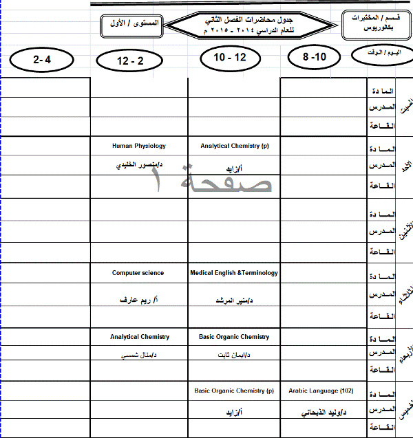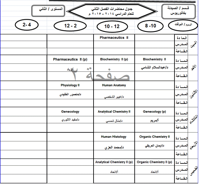 جدول البكالوريوس الفص الثاني للعام الجامعي2014-2015